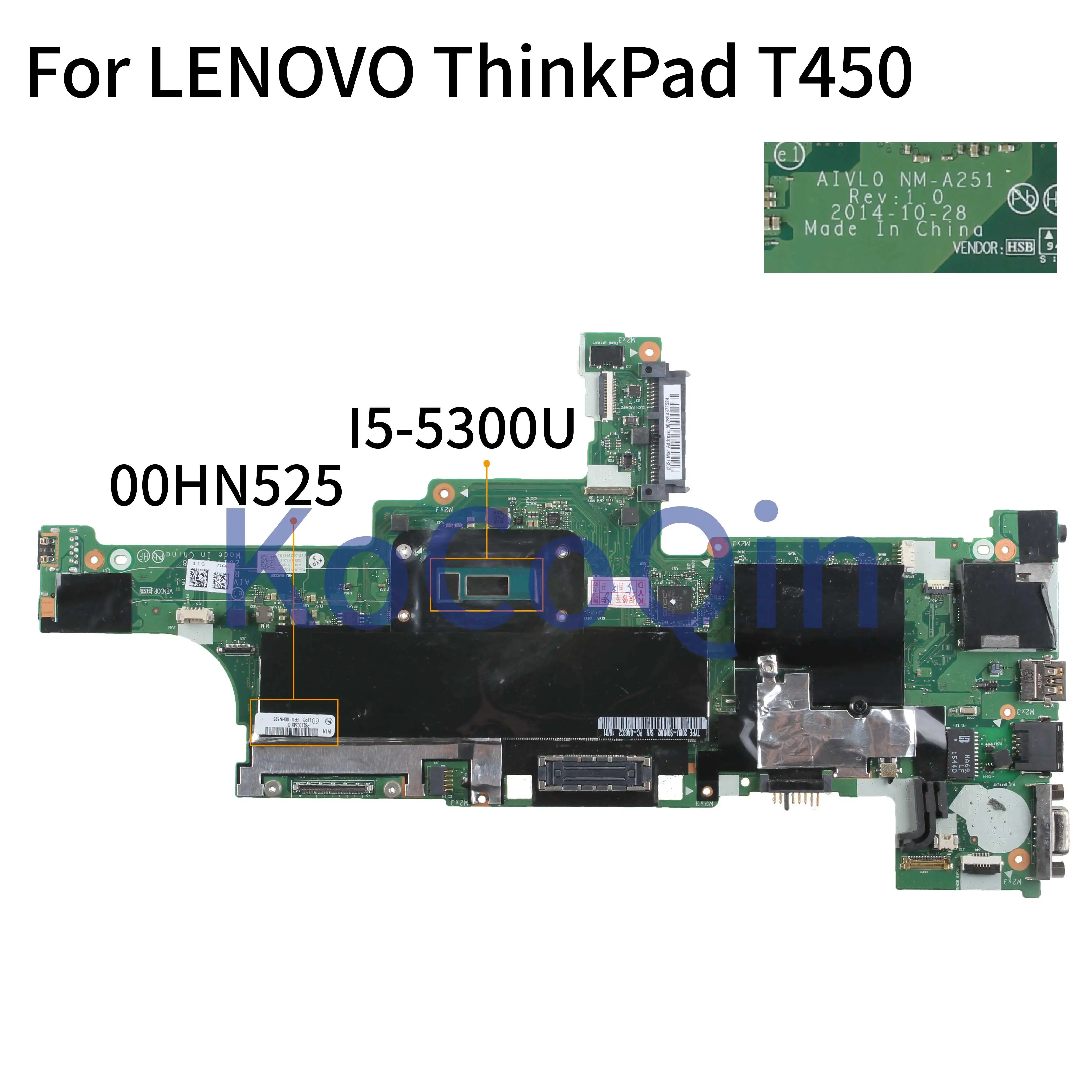 Finest KoCoQin Laptop motherboard For LENOVO ThinkPad T450 I5-5300U Mainboard 00HN525 AIVL0 NM-A251